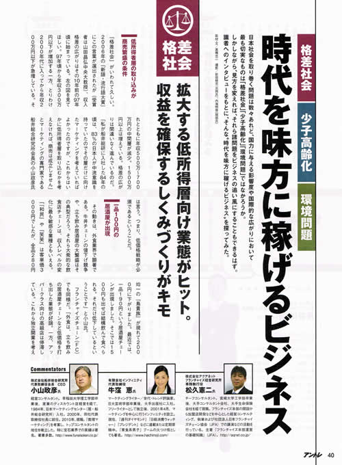 『アントレ』(リクルート)特集記事 2012年冬 『時代を味方に稼げるビジネス』(全6P)